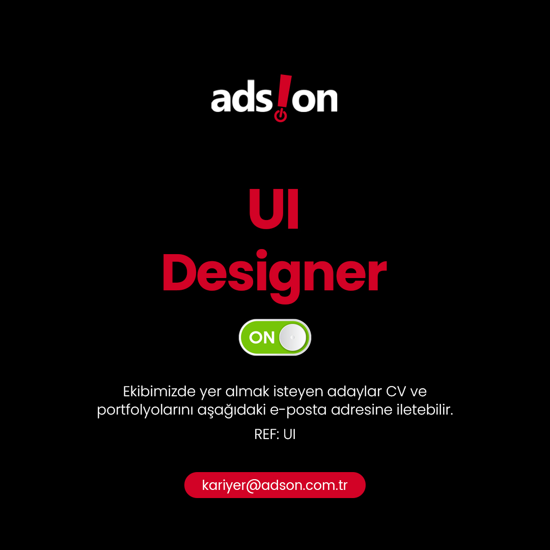 • Sen de eğlenceli ekibimize dâhil olmak istiyorsan CV’ni ve portfolyonu kariyer@adson.com.tr adresine gönder! Seni daha iyi tanıyabilmemiz için portfolyonun önemini unutma!