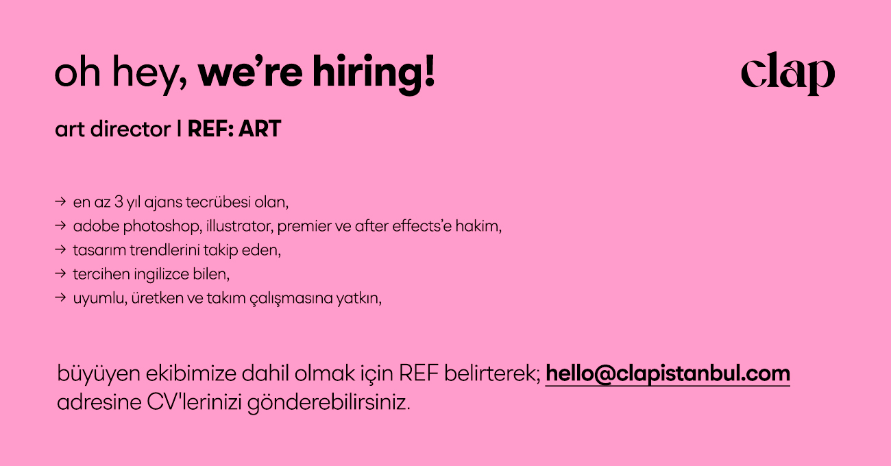 ? Başvurularınızı “ART” referansıyla hello@clapistanbul.com adresine iletebilirsiniz.