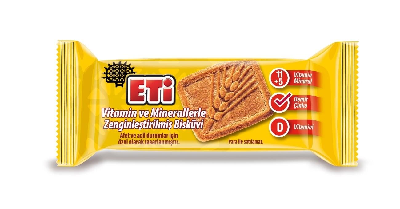 Afetzede vatandaşların günlük ihtiyacı olan besin öğelerinin bir kısmını karşılamasına yardımcı olacak şekilde tasarlanan bisküvinin içeriğinde Demir, Çinko ve D vitamini dahil olmak üzere 11 farklı vitamin ve 5 çeşit mineral bulunuyor. Bisküvi için özel olarak tasarlanan ambalajın üzerinde “Afet ve acil durumlar için özel olarak tasarlanmıştır” ifadesi ve “Para ile satılamaz” uyarısı yer alıyor.