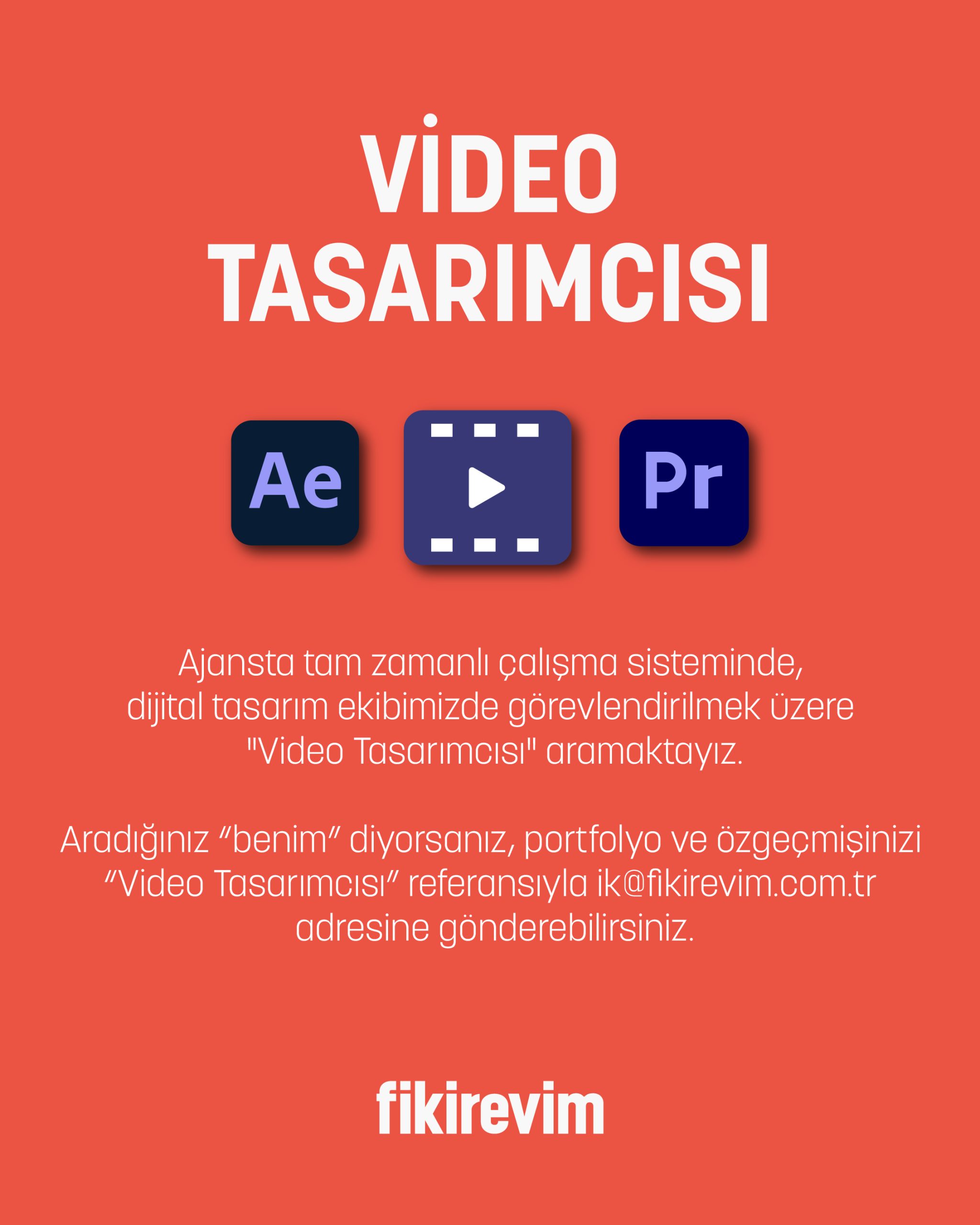 📩 Aradığınız “benim” diyorsanız, portfolyo ve özgeçmişinizi “Dijital Video Tasarımcısı” referansıyla ik@fikirevim.com.tr adresine gönderebilirsiniz.