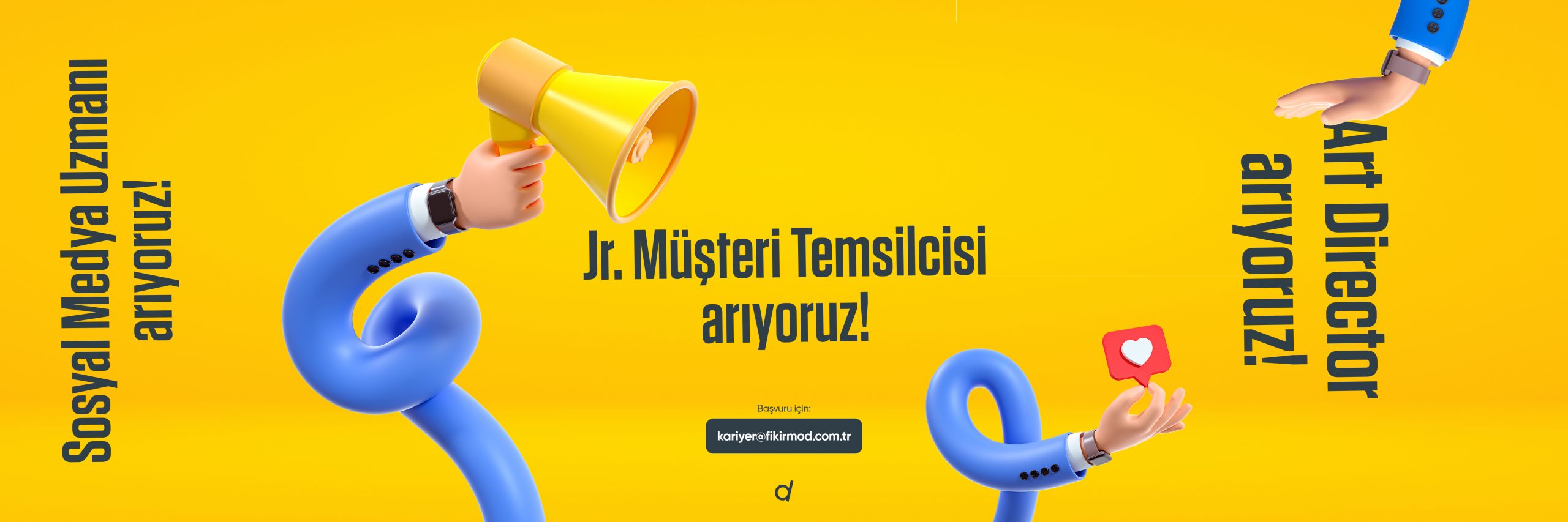 Başvuru ve özgeçmişinizi “JR MÜŞTERİ TEMSİLCİSİ” başlığı ve “MT-Aİ” kodu ile kariyer@fikirmod.com.tr adresine bekliyoruz.