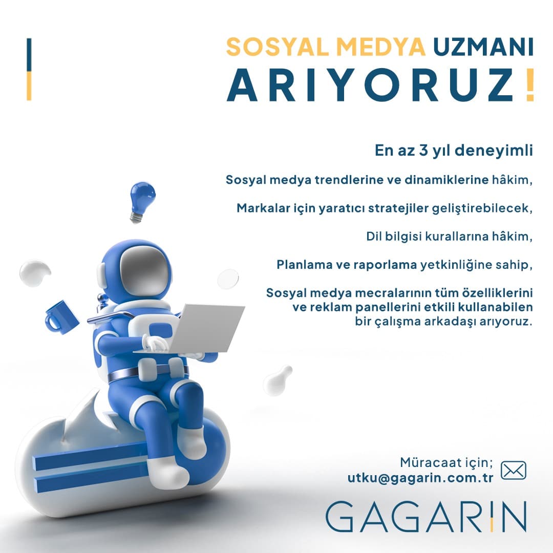 • Sosyal medya mecralarının tüm özelliklerini ve reklam panellerini etkili kullanabilen bir çalışma arkadaşı arıyoruz.