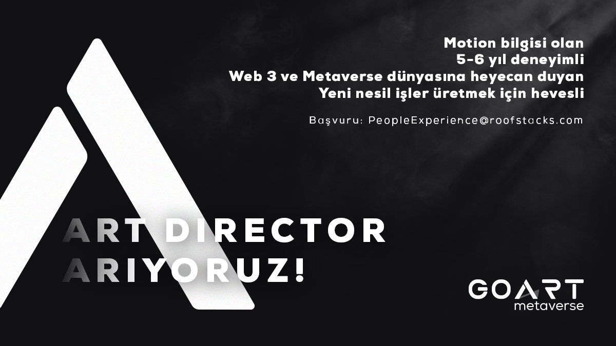GoArt Metaverse, Art Director Arıyor 30 Ocak 2023 0 FacebookTwitterPinterestWhatsApp GoArt; Web3 ve Metaverse dünyasına heyecan duyan, motion bilgisine sahip 5-6 yıl deneyimli Art Director arıyor! Başvuru: PeopleExperience@roofstacks.com