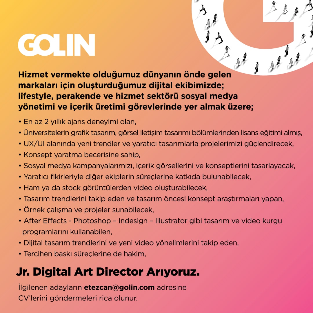 • İlgilenen adayların etezcan@golin.com adresine CV’lerini göndermeleri rica olunur.