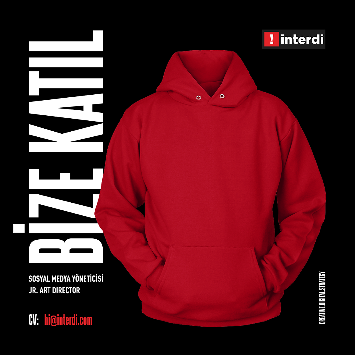 İnterdi’nin bir parçası olmak isteyen Sosyal Medya Yöneticisi ve JR. Art Dir. arkadaşların ilgili pozisyonlar için aranılan özellikleri bildiklerini ya da bir reklamcı olarak bizi ikna edebileceklerini varsayarak CV ve portolyalarını aşağıdaki başvuru adresine göndermelerini heyecanla bekliyoruz!