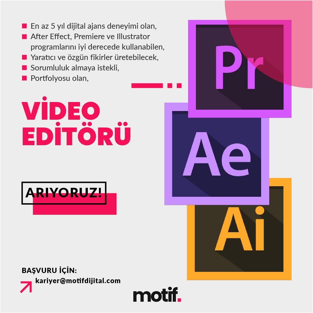 BAŞVURU İÇİN: kariyer@motifdijital.com