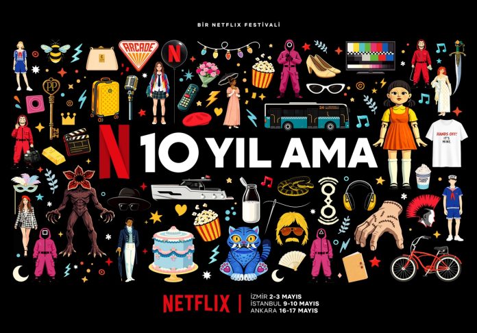 Netflix, Türkiye’deki 10. yılını kutlamak üzere fanlarıyla bir araya geleceği özel etkinlik serisi “N 10 Yıl Ama: Bir Netflix Festivali”ni duyurdu. 2-3 Mayıs’ta Kültürpark İzmir’de, 9-10 Mayıs’ta İstanbul Zorlu Center’da ve 16-17 Mayıs’ta Ankara Atlıspor Kulübü’nde gerçekleşecek etkinlikler kapsamında, ziyaretçilere Netflix’in sevilen yapımlarından ilham alan eğlenceli bir keşif ve deneyim alanı sunulacak.