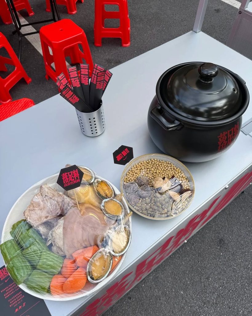 Marka, bu aktivasyonda ürün satışı yapmayı reddediyor. Bunun yerine, koşuculara antrenman sonrası toparlanmaları için geleneksel Çin tıbbına dayalı şifalı çorbalar ikram ediyor.