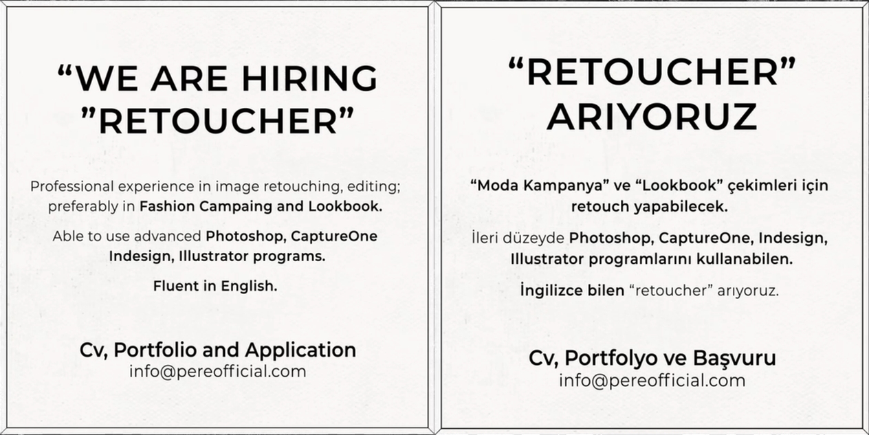 •CV, Portfolyo ve Başvuru: info@pereofficial.com