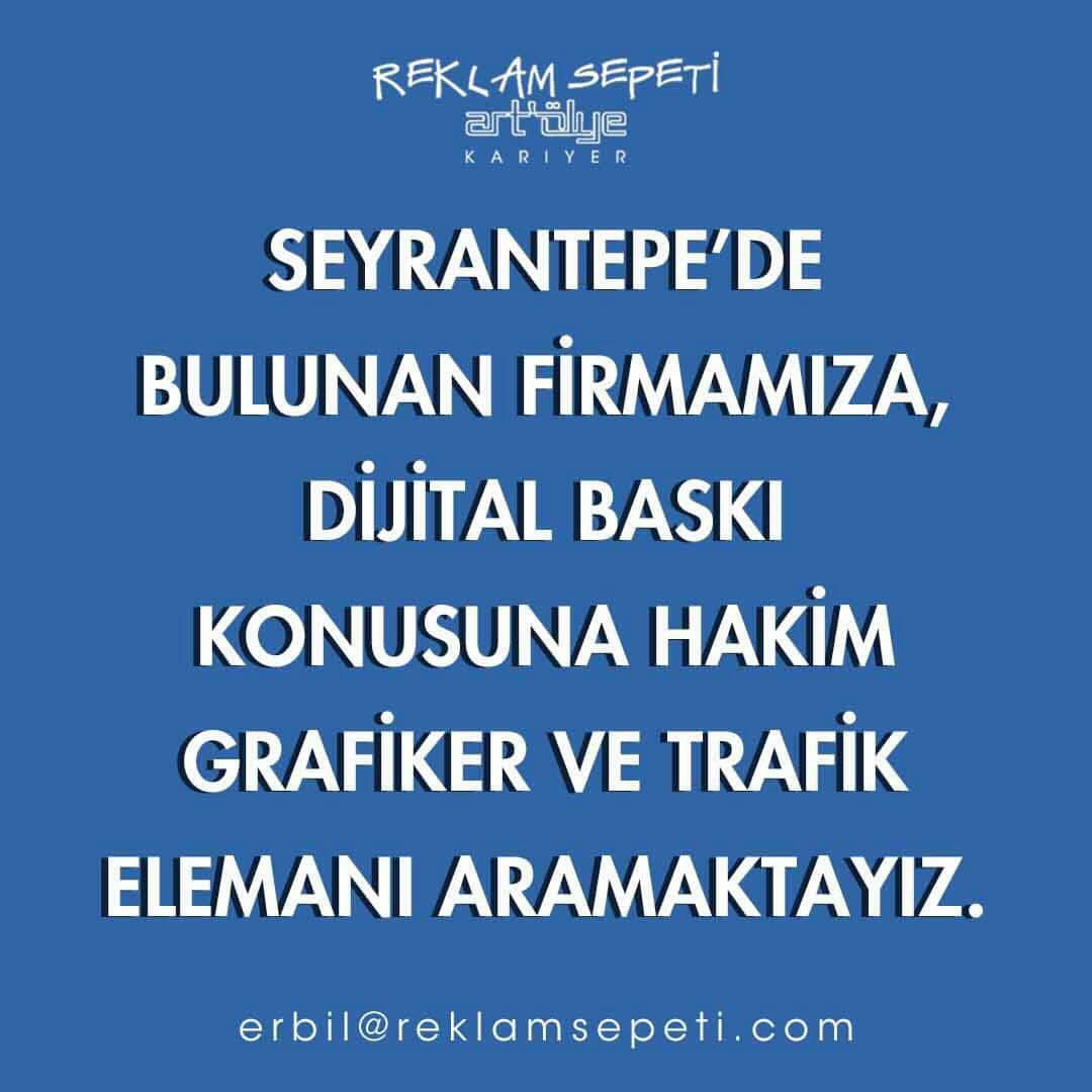 Reklam Sepeti Grafiker ve Trafik Elemanı Arıyor 9 Aralık 2019 0 FacebookTwitterPinterestWhatsApp Seyrantepe’de bulunan firmamıza, dijital baskı konusuna hakim Grafiker ve Trafik Elemanı aramaktayız. CV ve portfolyolarınızı erbil@reklamsepeti.com adresine gönderebilirsiniz. Ajans Lokasyonu: Kağıthane İstanbul