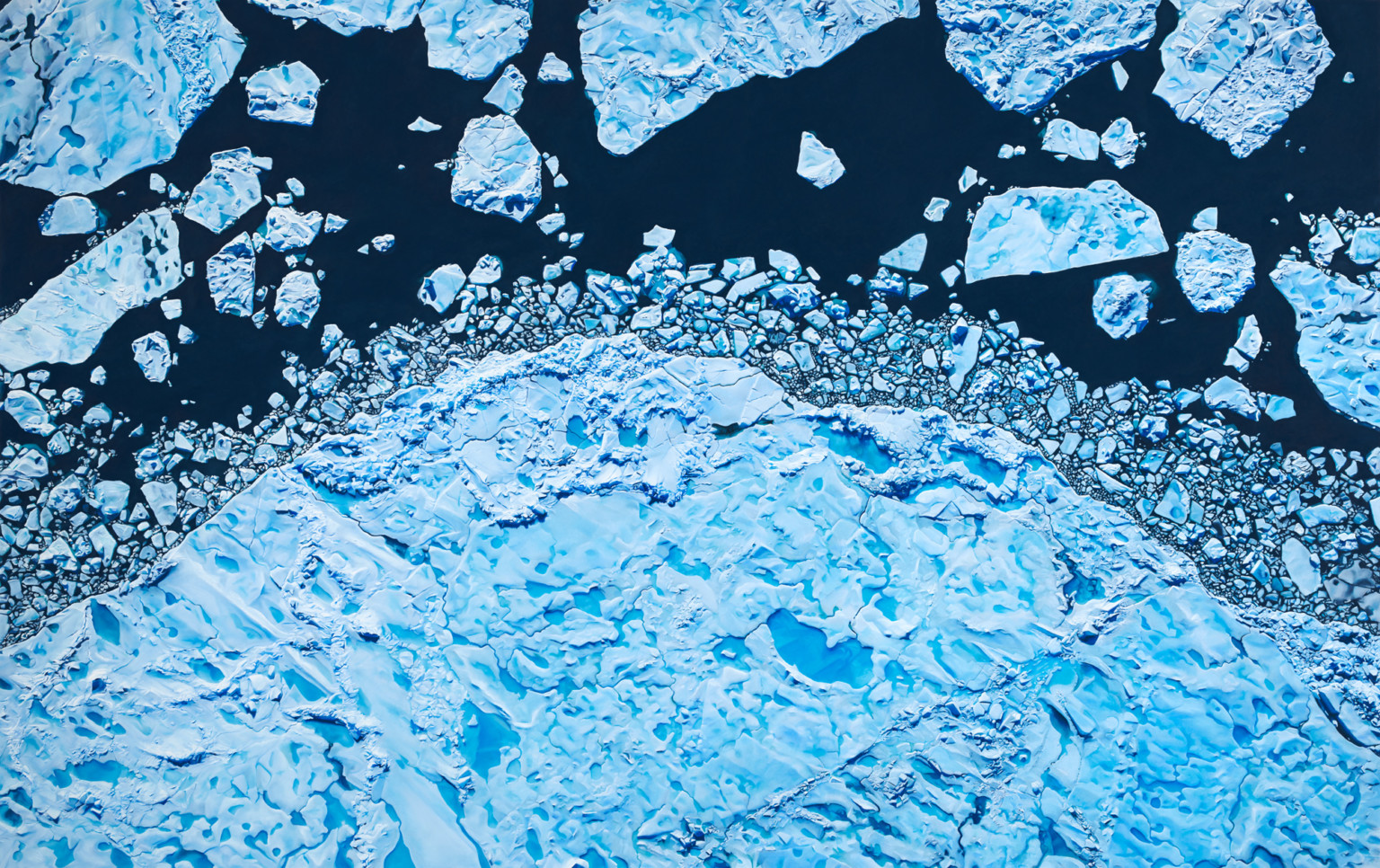 Brooklyn’li pastel boya sanatçısı Zaria Forman, buzulları ilk elden deneyimlemek ve belgelendirmek için çoğu zaman dünya çapında seyahat ederek binlerce referans fotoğrafı çekerek muazzam pastel çizimleriyle bilgilendiriyor.